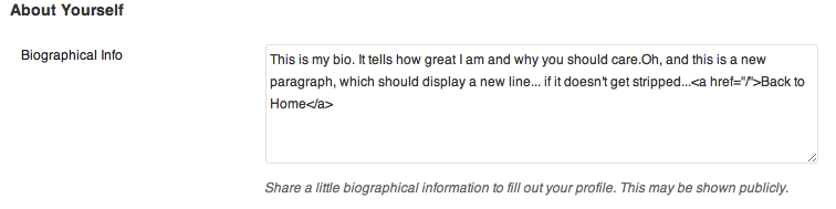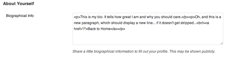 If you’re considering disabling the WordPress sanitization, make sure you trust your users to not enter potentially harmful content into their profile bios. This includes iframes, forms, and more.