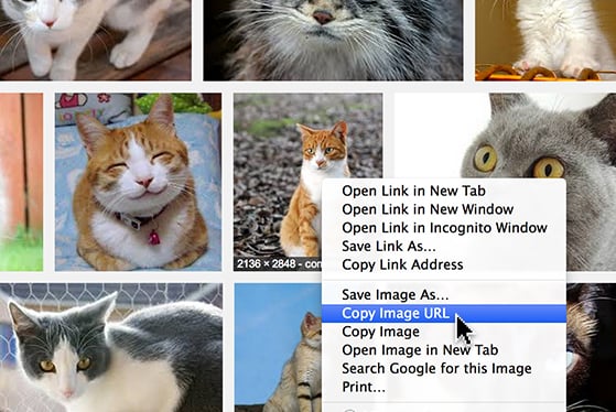 You can include images on your site that are hosted at other locations on the web. When you find the image you want to use, hover over the image, right click on it and copy the link (The ‘Copy Image URL’ wording will vary depending on your browser).